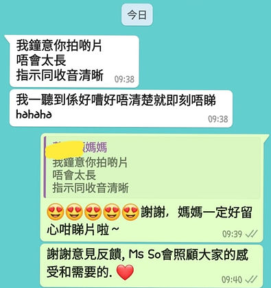 Ms So 是一位很用心的老師, 當初是在facebook 無意中留意到Ms So的專頁並關注了一段時間, 於是嘗試幫小朋友報了暑期班. 小朋友很喜歡上Ms So 的課堂並且點名要上老師的課 (之前沒有試過的!) 之後還參加了恆常班及個別訓練班. 很欣賞老師的教學及寓學於玩的理念, 並且會因應個別學生的程度而調節課程, 無論於小組班或個別班也見到小朋友的進步, 而家長也可於老師的分享下協助小朋友一起學習, 進行有quality的親子時間, 增加家庭樂!